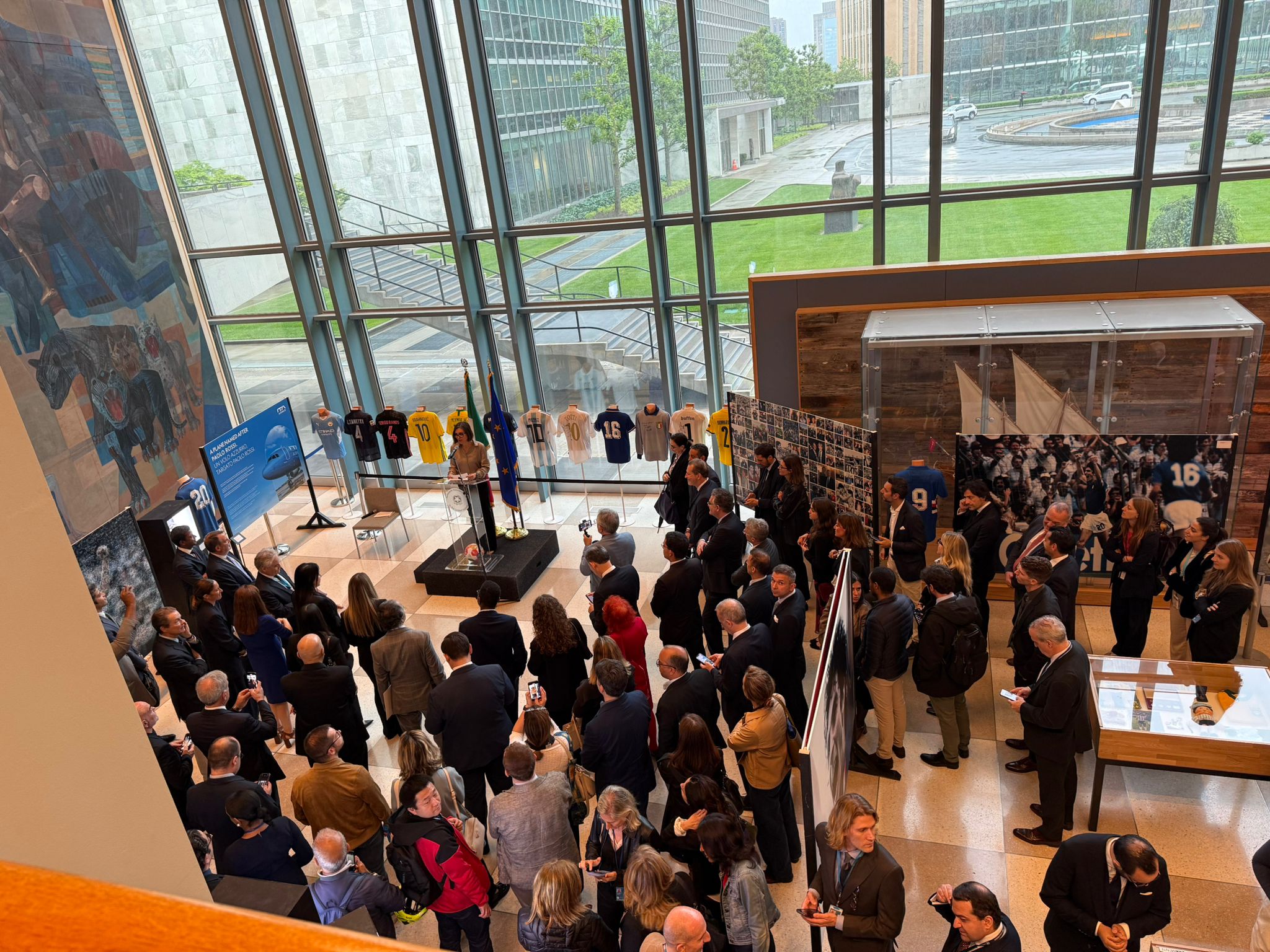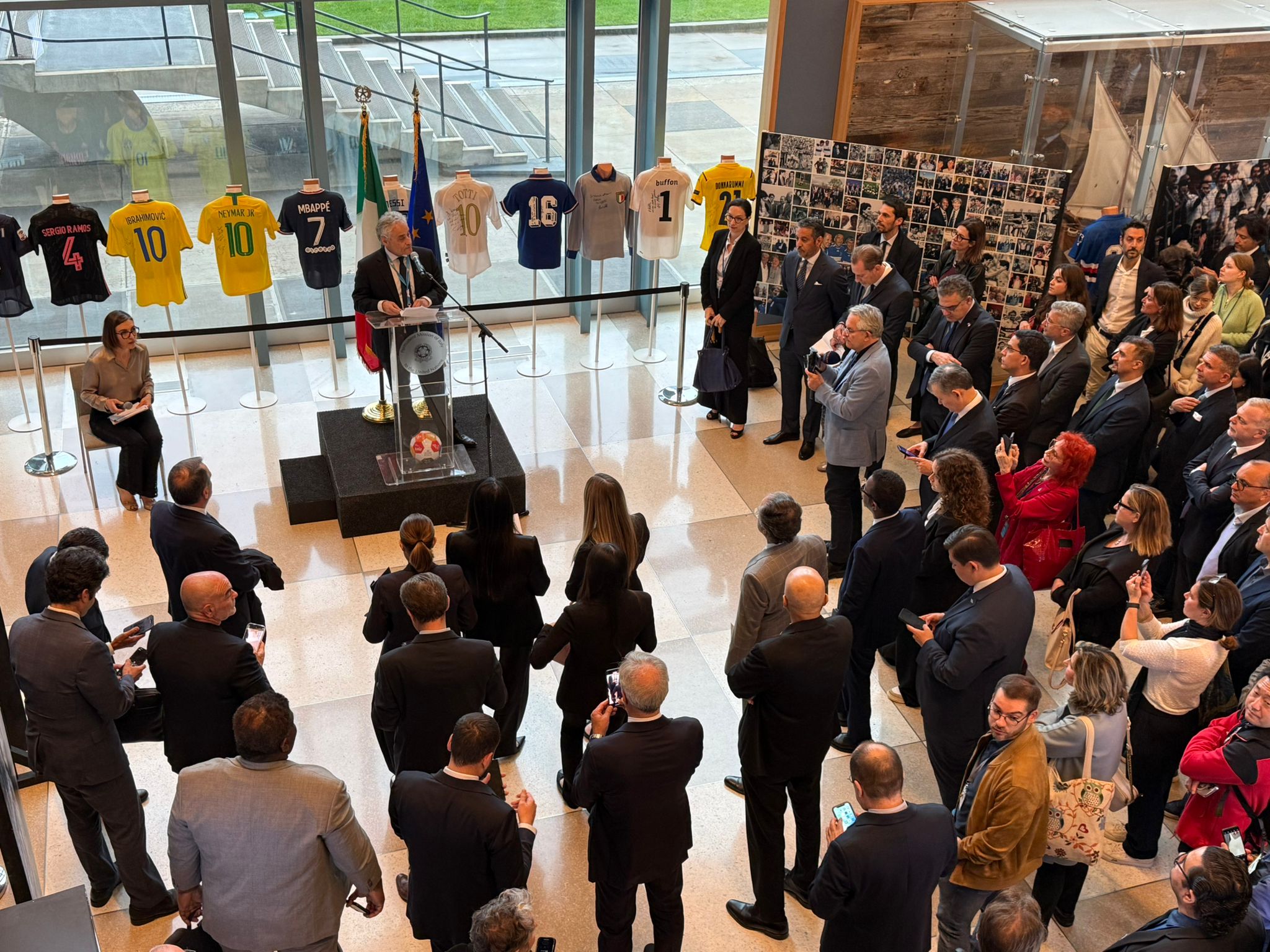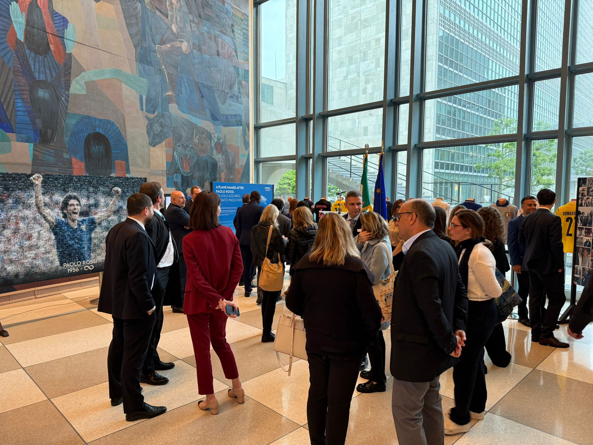 Dalle prime scarpette da aspirante calciatore alla Adidas d’oro della leggenda: la parabola calcistica e umana di Paolo Rossi, leggenda del calcio mondiale e simbolo di valori che trascendono lo sport, “Paolo Rossi ragazzo d’oro” e’ stata co-organizzata dalla Rappresentanza Permanente italiana alle Nazioni Unite e dalla Fondazione Paolo Rossi, alla presenza di Marco Tardelli e di Federica Cappelletti, Presidente della Divisione Serie A Femminile Professionistica della FIGC e moglie del campione dei Mondiali ’82 scomparso prematuramente nel dicembre 2020.