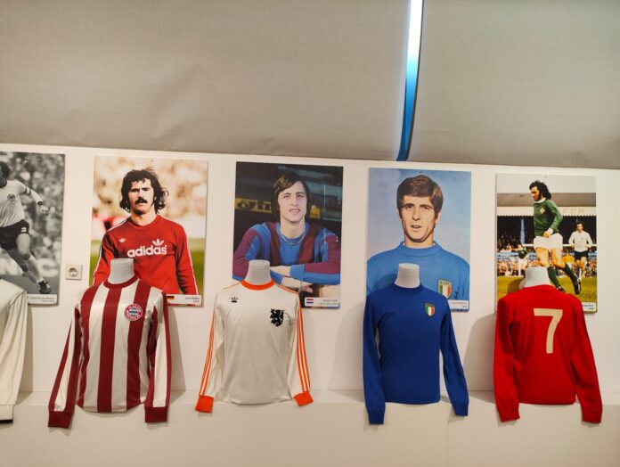 E quindi ecco che si possono ammirare anche le maglie di Maradona, Pelé, Alfredo Di Stefano, Gerd Müller, Giuseppe Meazza, Sandro Mazzola, Bobby Charlton, George Best, Falcao, Lev Yashin, Ferenc Puskas, Franz Beckenbauer, Johan Cruijff, Dino Zoff, Hristo Stoichkov, Lothar Matthäus, Roberto Baggio, Paolo Maldini, Franco Baresi, Marco van Basten, Michel Platini, Ronaldo, Cristiano Ronaldo, Lionel Messi, Fabio Cannavaro, Kakà Zinedine Zidane, Neymar, Zlatan Ibrahimović, Luis Figo, Eusebio, Gigi Buffon, Francesco Totti, Andrea Pirlo, Ronaldinho, Kylian Mbappé, Erling Haaland… Comprese le maglie di tutti e 47 i vincitori del Pallone d’oro, da Stanley Matthews che vinse il primissimo trofeo nel lontano 1956 a Rodri trionfatore nel 2024. Oltre a uno dei tre Palloni d’oro vinti da Cruijff all’inizio degli anni ’70. Roba da far strabuzzare gli occhi anche agli appassionati più esigenti.