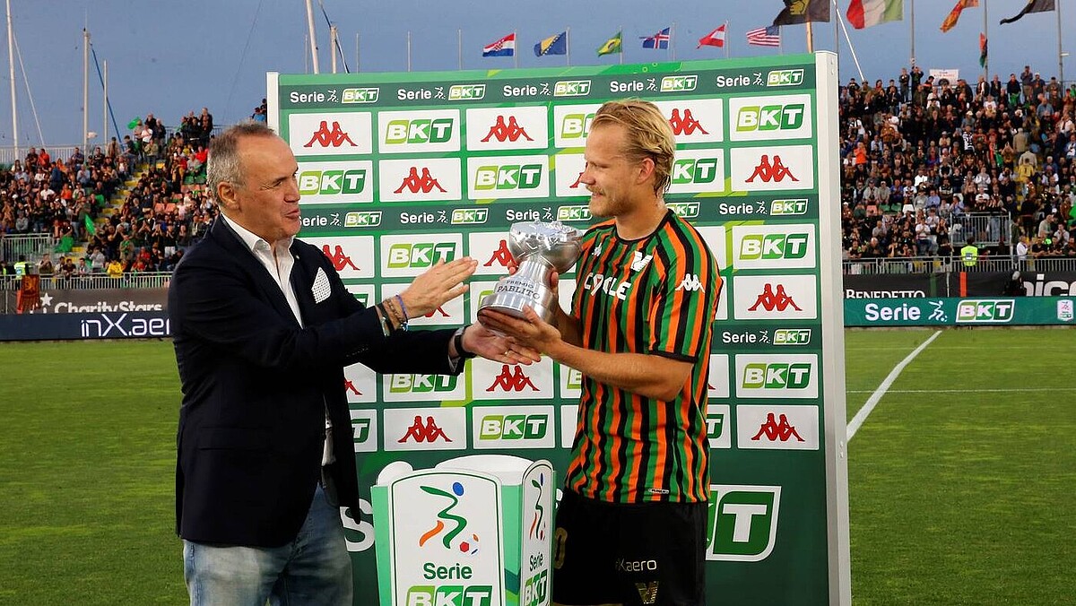L’attaccante del Venezia è il capocannoniere della Serie BKT 2023/2024, la premiazione a Venezia da parte del presidente Mauro Balata